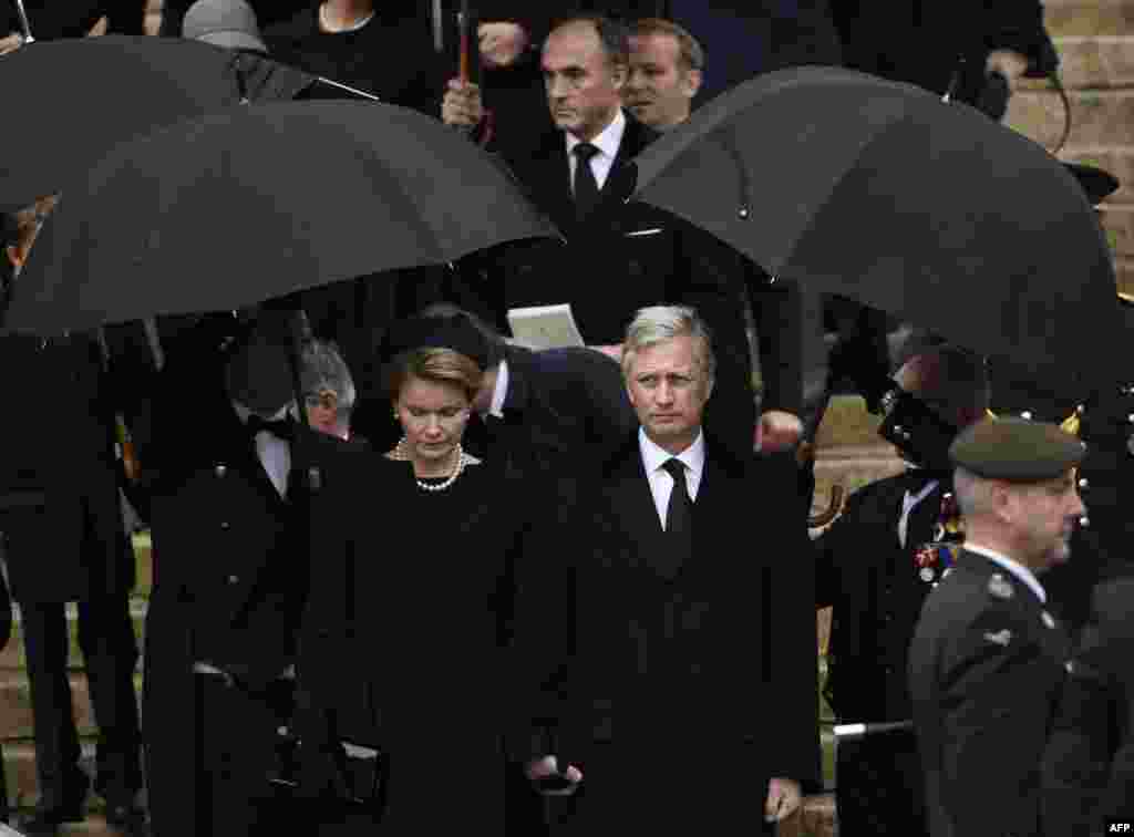 Belgium's King Philippe and Queen Mathilde and Prince Lorenz leave the funeral service of the late Queen Fabiola, at the Cathedral of St. Michael and St.Gudula, in Brussels. Queen Fabiola passed away December 5 at the age of 86.