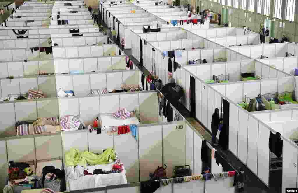 A general view of a shelter for migrants inside a hangar of the former Tempelhof airport in Berlin, Germany