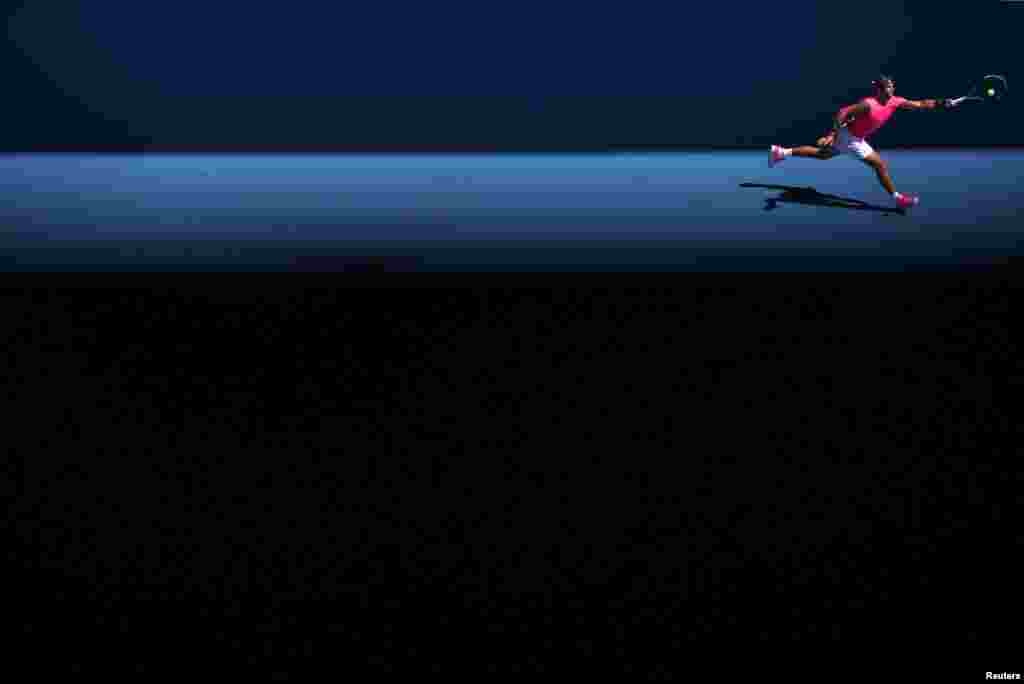 Spain's Rafael Nadal is seen in action during the match against Bolivia's Hugo Dellien at the Australian Open, Melbourne Park, Melbourne, Australia.