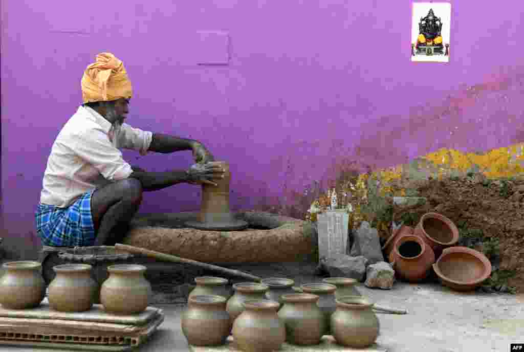 A potter works to prepare for the Hindu Pongal festival, or Makar Sankranti, in a village near Chennai, India.